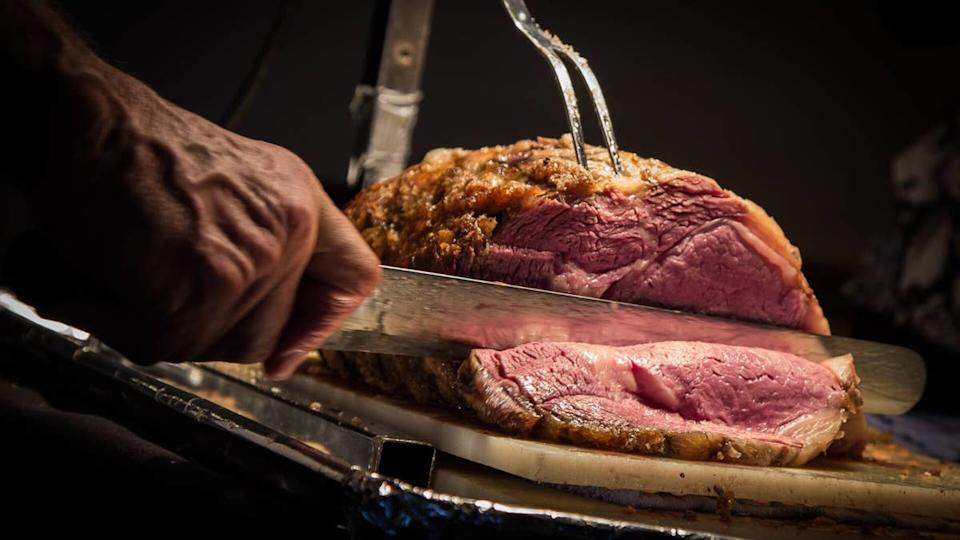 The steakhouse’s menu includes its Rosewood Ranches American ribeye at $145, a dry-aged porterhouse at $143, a 16-ounce wet-aged bone-in filet at $130, a 12-ounce filet mignon at $87, an 801 cut bone-in prime rib at $79, and a 16-ounce ribeye at $77.