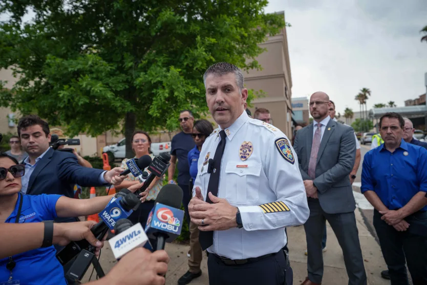 Baton Rouge Mayor-President Sid Edwards joined law enforcement at the scene in the afternoon, saying, “To the thugs who did this, we are going to catch you.”